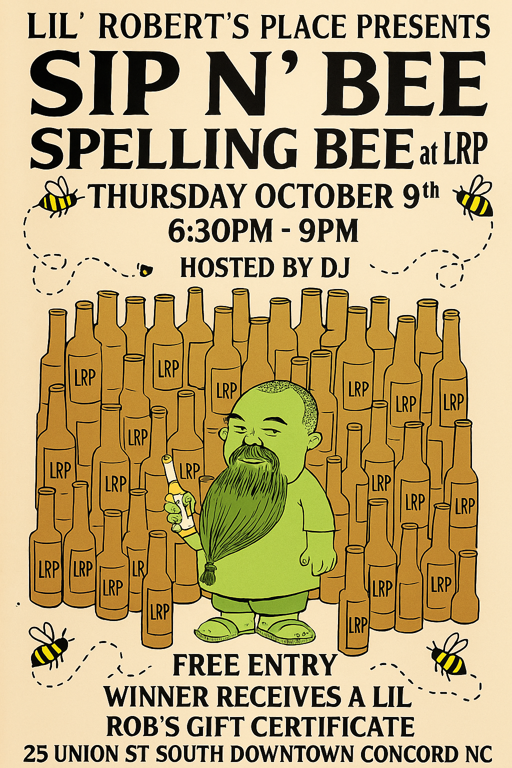 LRP is proud to present the first EVER Sip n’ Bee Spelling Bee at Lil Roberts Place. Thursday October 9th from 6:30pm to 9pm. Hosted by your trivia and bingo host, DJ. Along with his co-host, Kristen. Please arrive early to get your beers and get settled before showtime! 1st place winner receives a genuine LRP gift certificate! This event will be happening on the bar side and FREE TO ENTER! Sign up interest sheets will be on both bar and Mullet side, as well as you hitting "interested" on this event page. Get the word out, drag your friends, family, haters, and everyone you know. The more contestants, the better. Let’s make this a GREAT FIRST BEE!!!